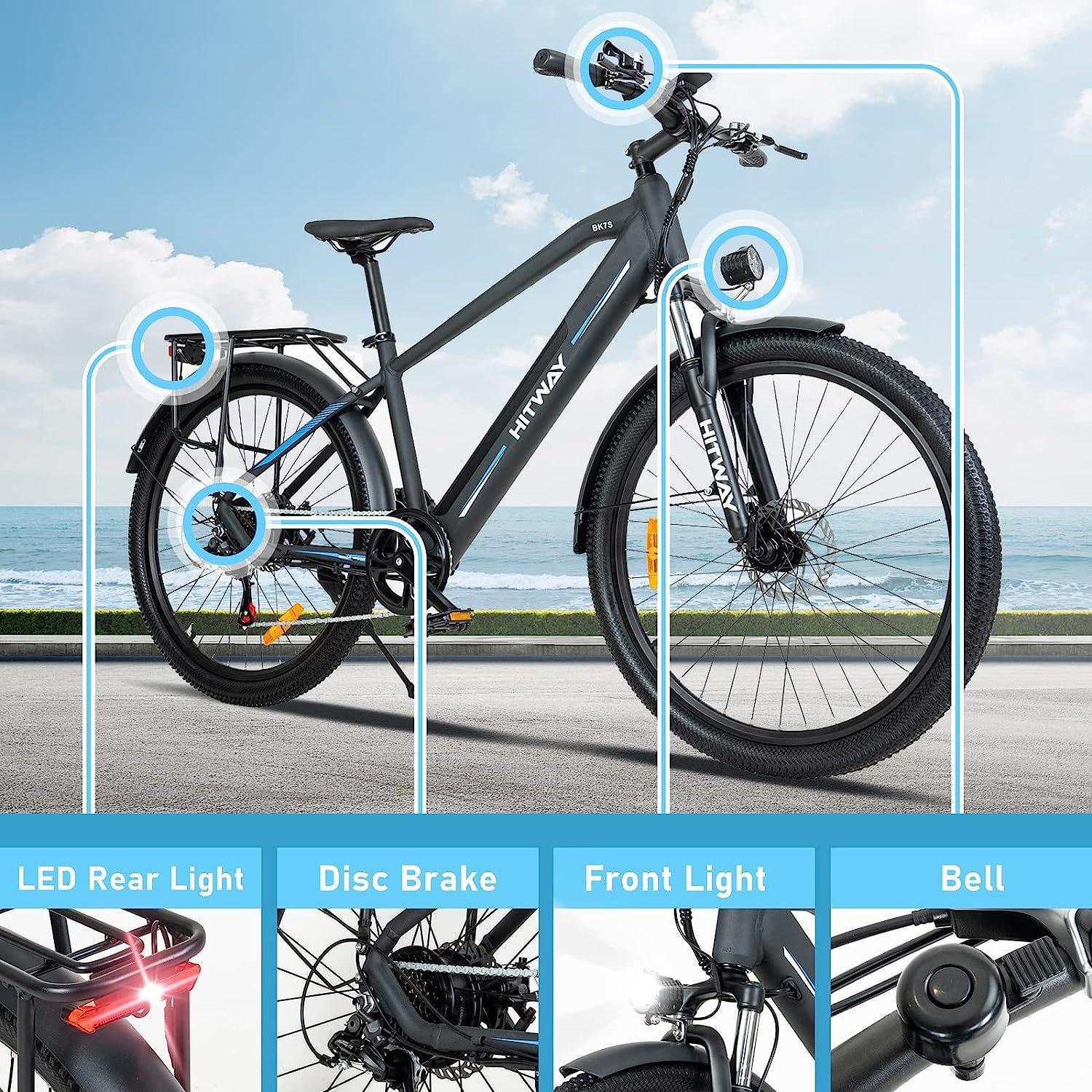 ✔ Garantie de sécurité fiable – Le vélo électrique est équipé d’un système de freinage à double disque, qui peut réduire efficacement la distance de freinage. Les phares à haute luminosité et les réflecteurs arrière vous offrent une excellente visibilité et assurent efficacement votre sécurité lors des déplacements nocturnes.