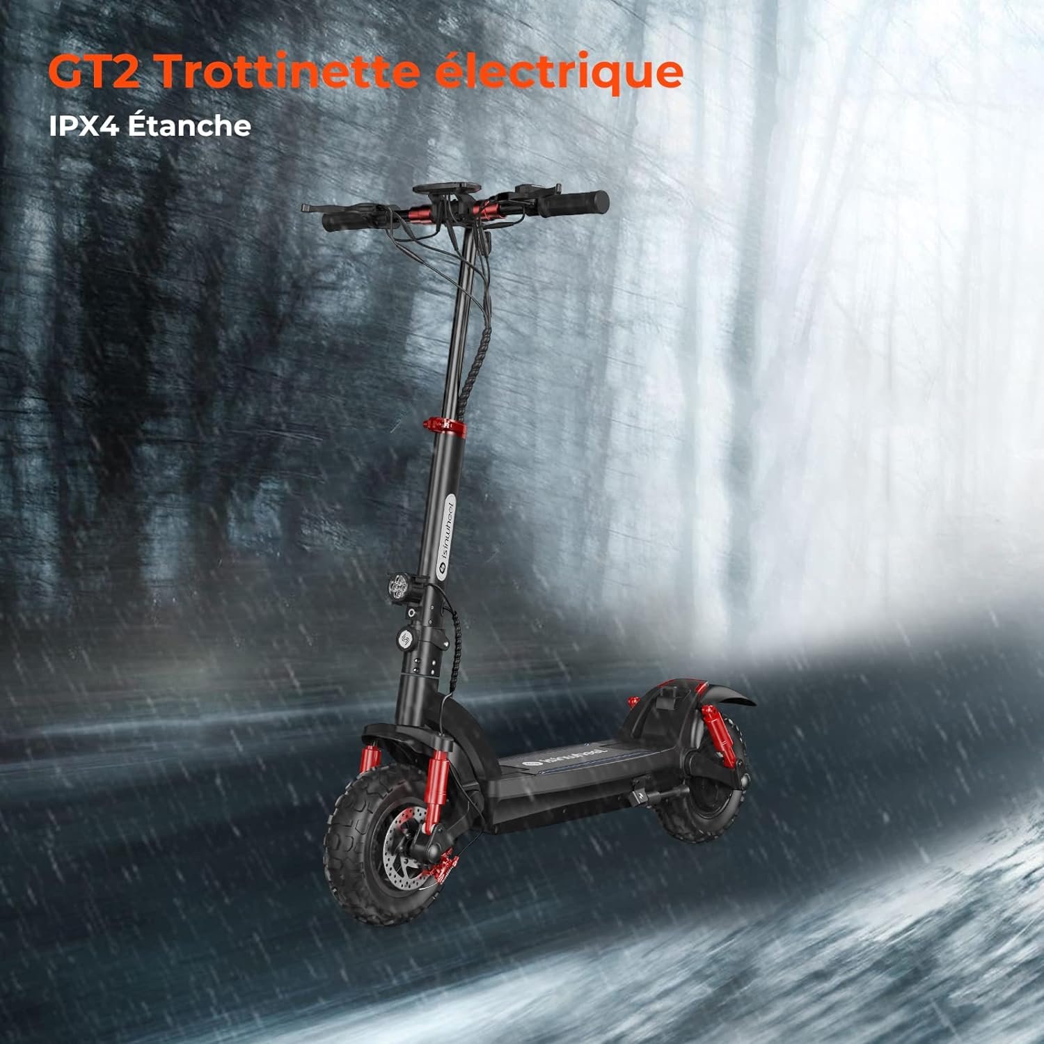 - SYSTÈME DE FREINAGE SÉCURITÉ : GT2 trottinette électrique a été entièrement mis à niveau pour répondre aux quadruples exigences des freins à disque mécaniques doubles avant et arrière et des freins électriques avant et arrière, ce qui rend les freins plus sûrs et plus stables. Le scooter électrique corps est en alliage d’aluminium de haute qualité, qui est plus résistant, et les méthodes d’absorption des chocs hydrauliques doubles à l’avant et à l’arrière rendent la conduite plus confortable.